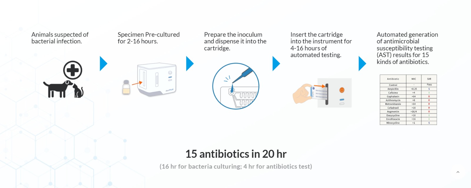 • Fights antimicrobial resistance (AMR) by providing actionable data quickly so veterinarians can prescribe the most effective antibiotics.